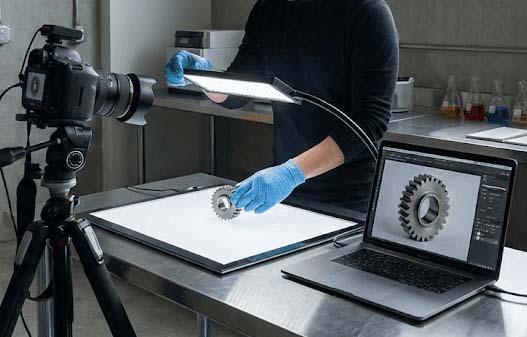 Fotografía industrial de acero inoxidable | Imágenes profesionales sin reflejos